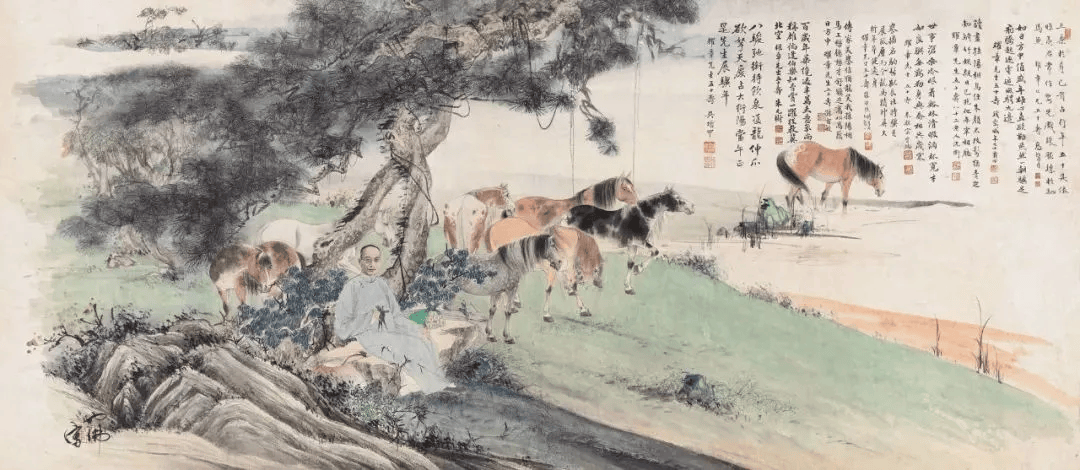 其实胡也佛不仅仅精于仕女画,他也非常擅山水、走兽、花鸟。他和绘画大师黄宾虹、石壶、黄秋园和陶博吾等人一样,一直到去世以后才慢慢为人所熟知。