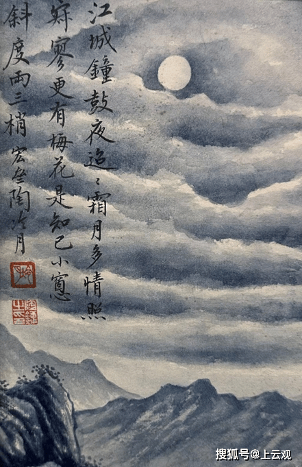在笔墨技法上,陶冷月达到了炉火纯青的境界。他独创“积墨积色法”,以层层叠加的淡墨淡色,既保留水墨透明感,又赋予画面厚度与深度,精准呈现云层变幻与月光清辉。画山水时,借鉴西画透视原理,让远山层次分明、立体感十足;画月色时,以独创技法营造朦胧通透之感,虽不画水,却让人感受到清辉满溢、夜色如水。画梅花尤为传神:他吸取宋元杨补之、王元章画法,融合徐崇嗣“没骨法”与水彩干画技巧,梅干以焦墨勾勒,苍劲老辣如篆籀;花瓣以没骨法点染,晶莹剔透似冰雪;长枝细蕊穿插有致,在月光下更显清雅脱俗。海派宗师吴昌硕对其梅花极为推崇,甚至将自用“明月前身”印章相赠,成为画坛佳话。