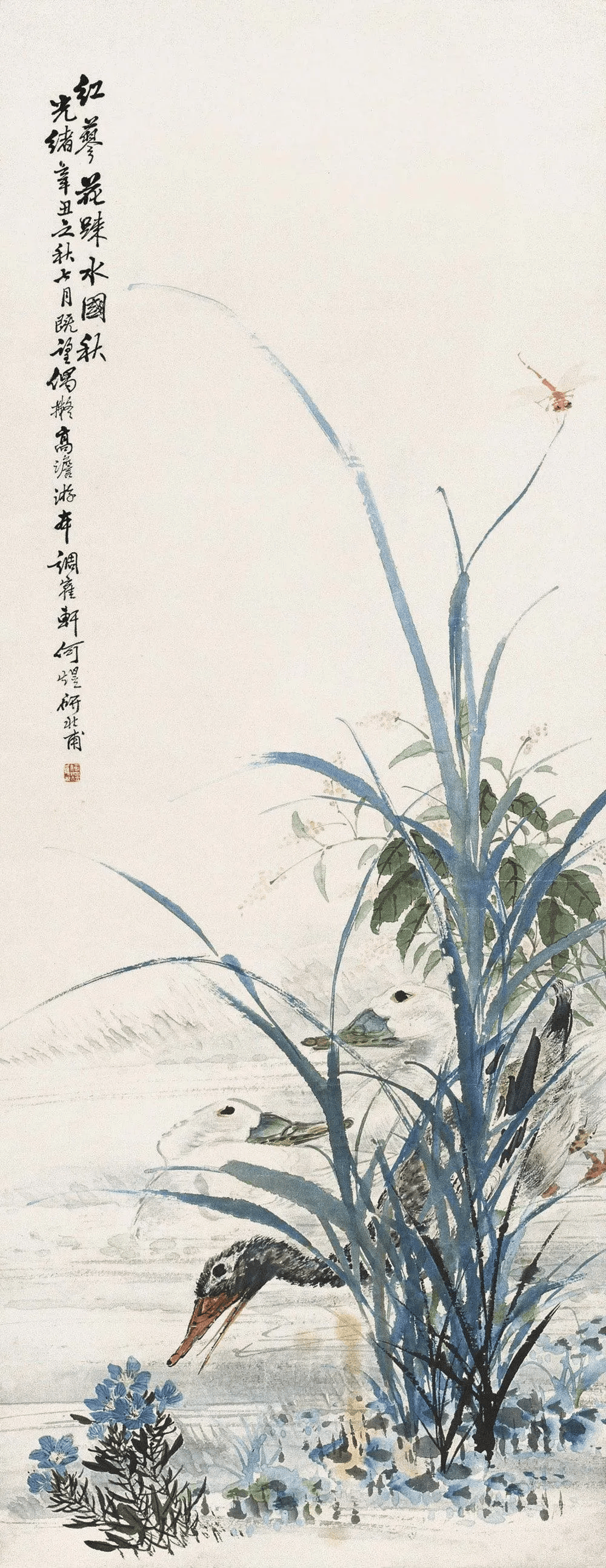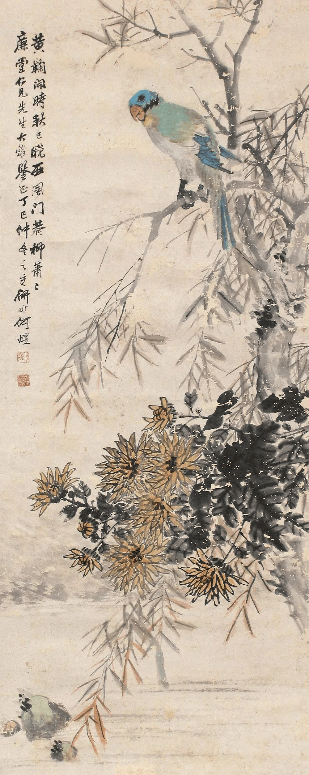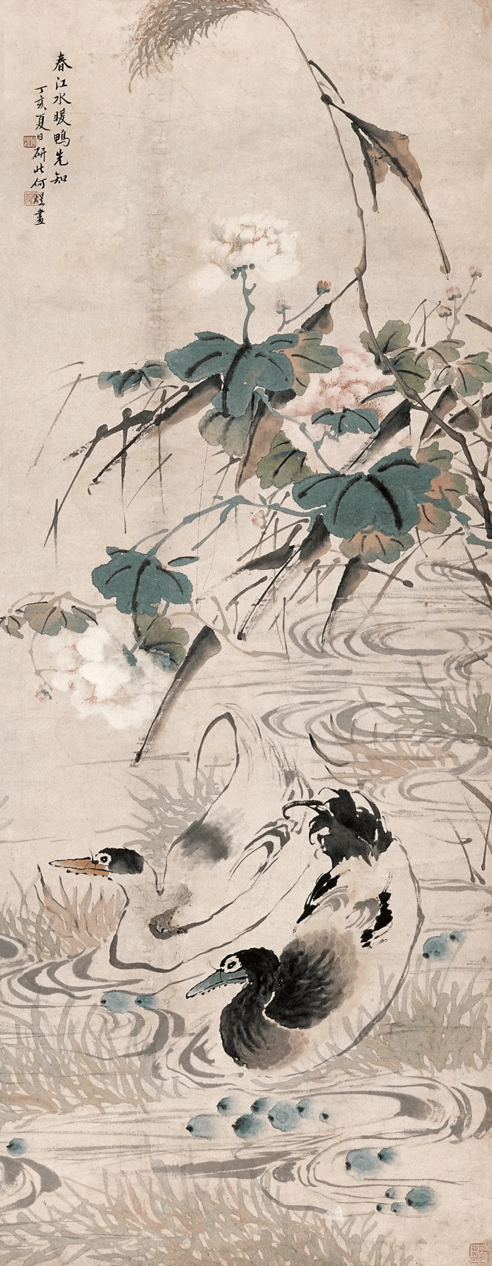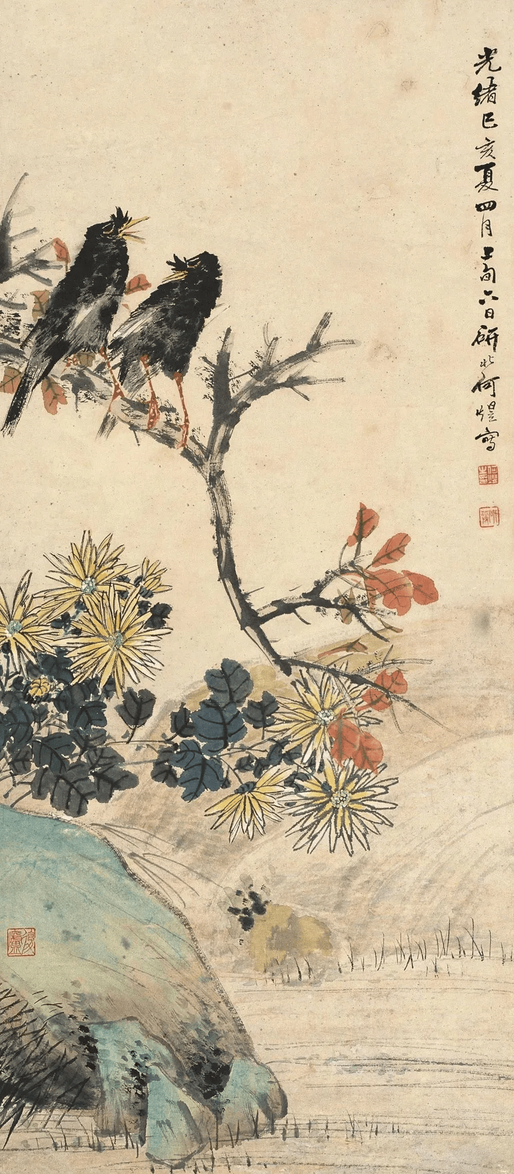 何煜擅画没骨花鸟、草虫。其作品以精妙绝伦的笔墨、清润典雅的设色、热烈生动的意境,一度名噪上海,并成为近现代海上画坛的重要代表人物。