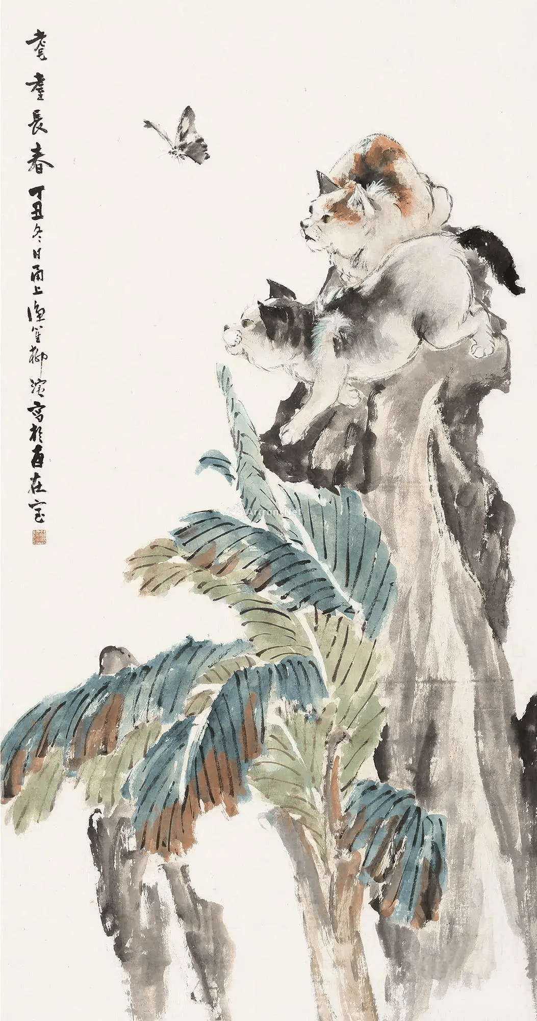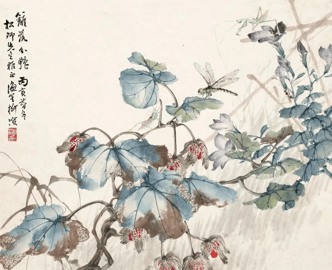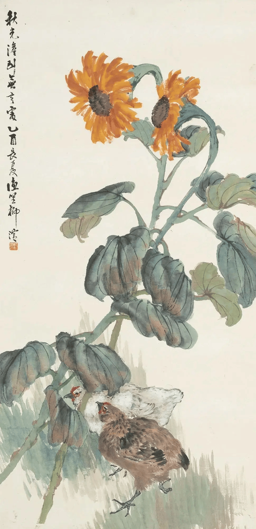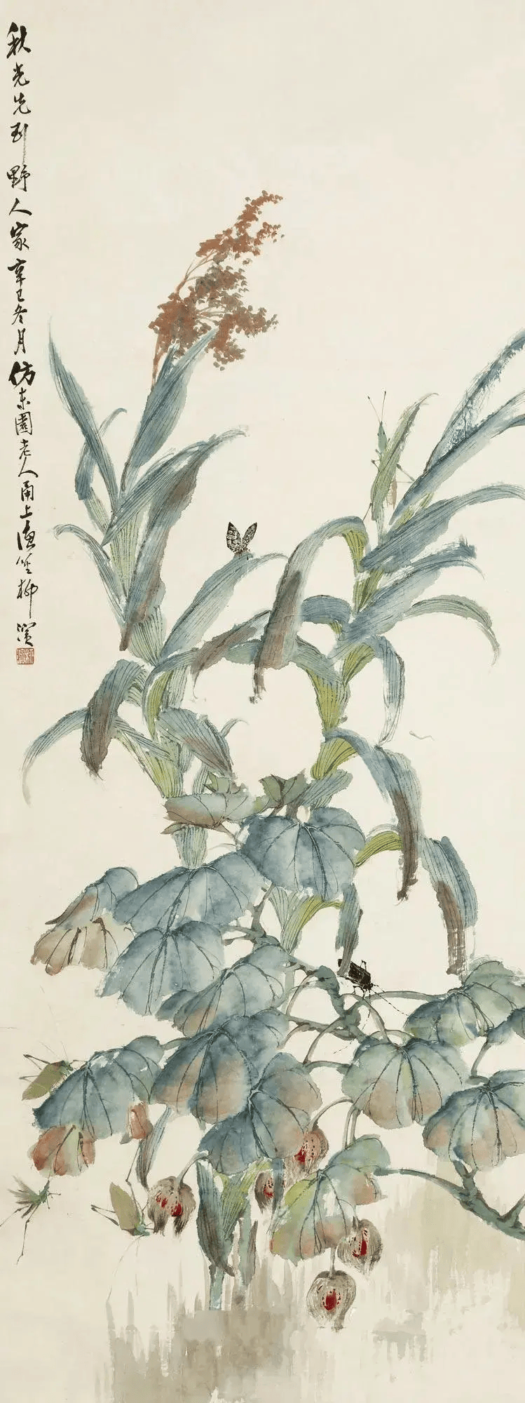 其画人物,宗华喦,参以钱慧安、任伯年;画翎毛、花卉、走兽,则学程璋(字瑶笙)。因二人风格十分接近,时人誉为“程瑶笙后一人而已”,并称“海上二笙”。