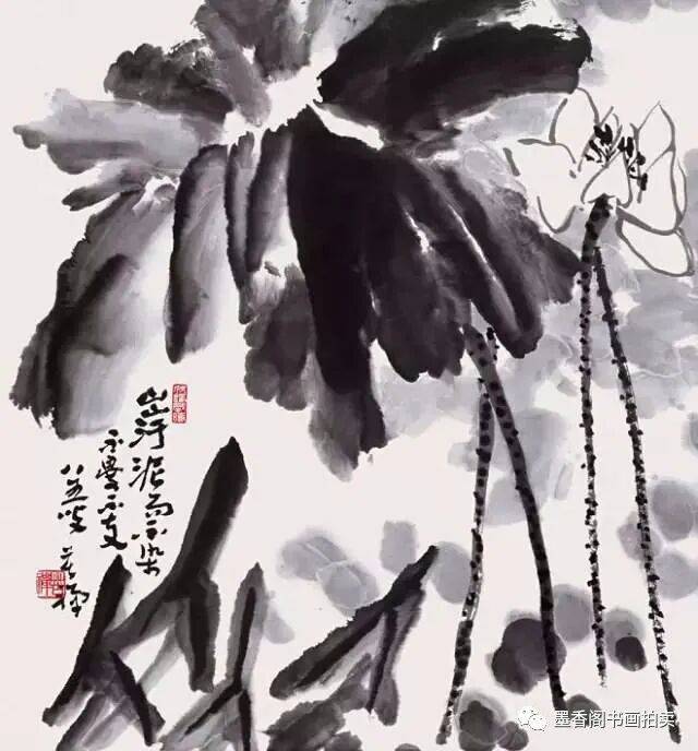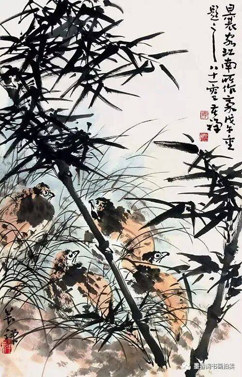 中国传统大写意画传统画法的布景层次较少,主要是一至二个层次。李苦禅把山水画法的平远,高远之法,运用到花鸟画上,能达三四个层次。