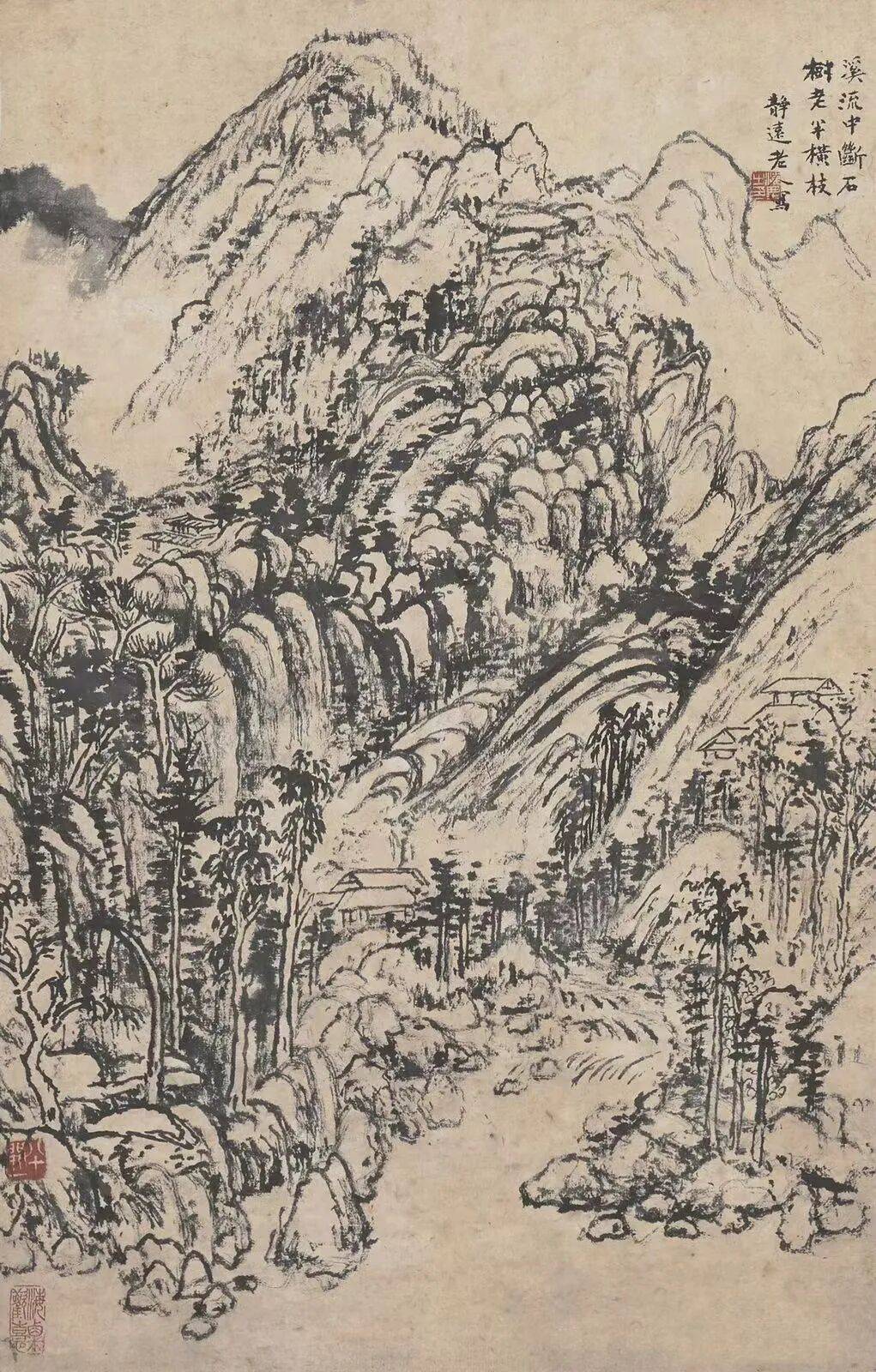 刘海粟《溪流中断石》1966年 纵67.3厘米横43厘米 现藏于刘海粟美术馆