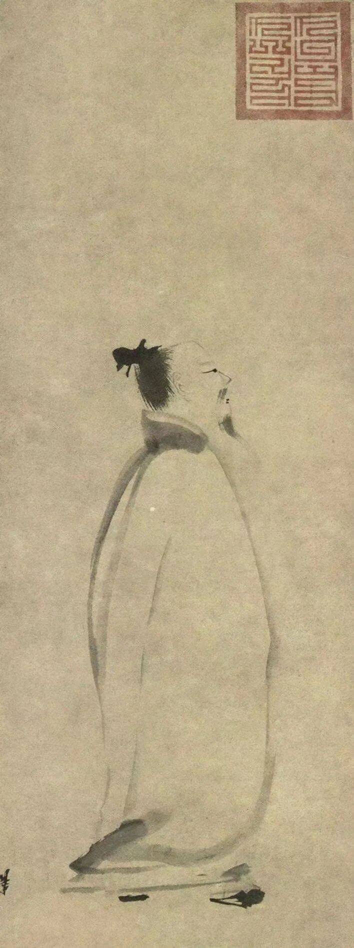 梁楷有减笔画,我们看他的《李白行吟图》,这张画在日本印刷品很多,以极简练的笔墨,写诗人潇洒飘逸的风度,神气活现,生动逼人。所谓无笔墨处有韵味,意到笔不到,妙处就在这里。