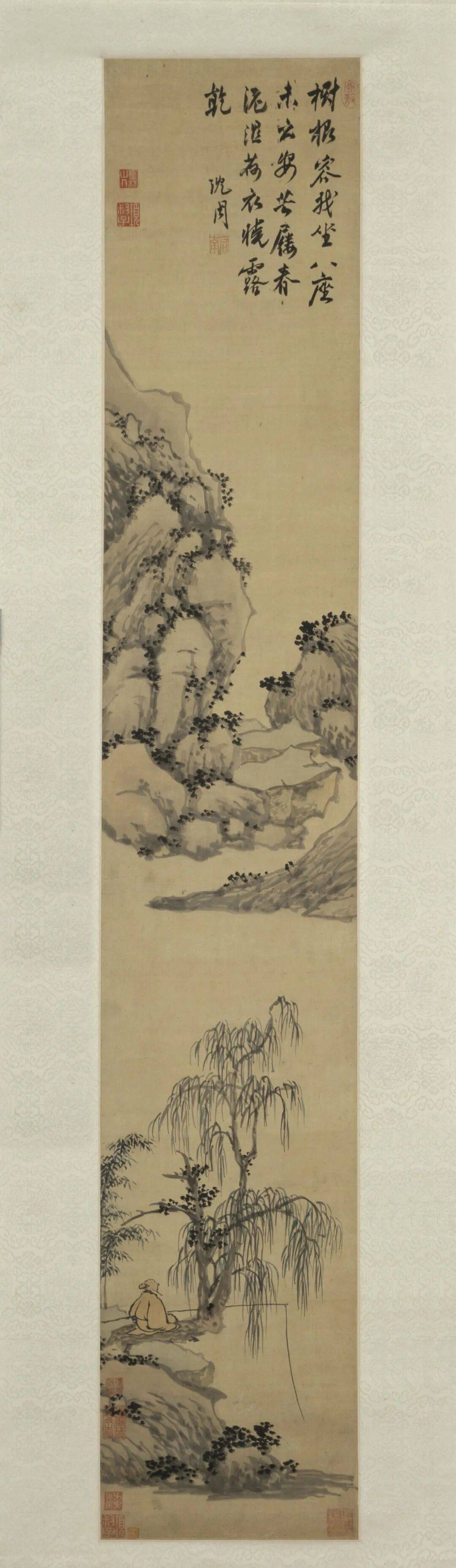 沈周《柳荫坐钓图》纵136.3厘米横23.6厘米 现藏于故宫博物院