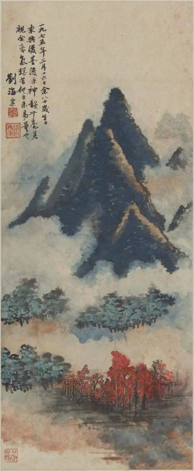 刘海粟《泼彩山水轴》1975年 纵110.4厘米横45.3厘米 现藏于刘海粟美术馆