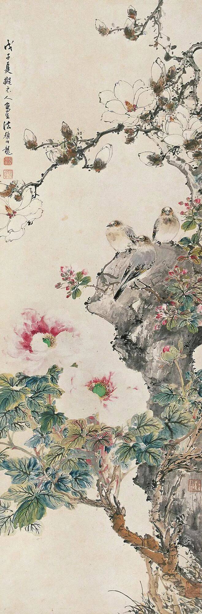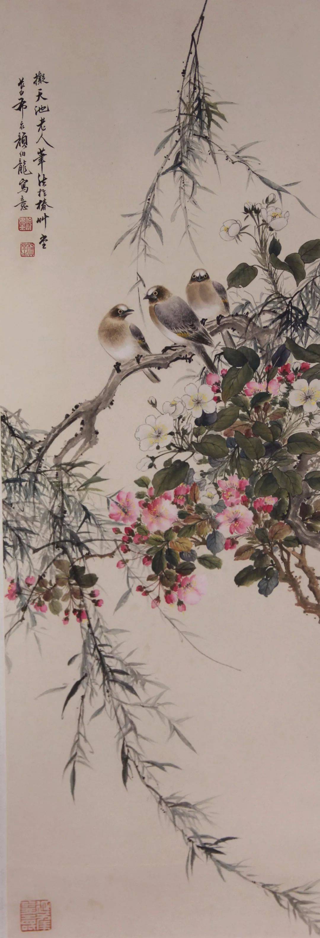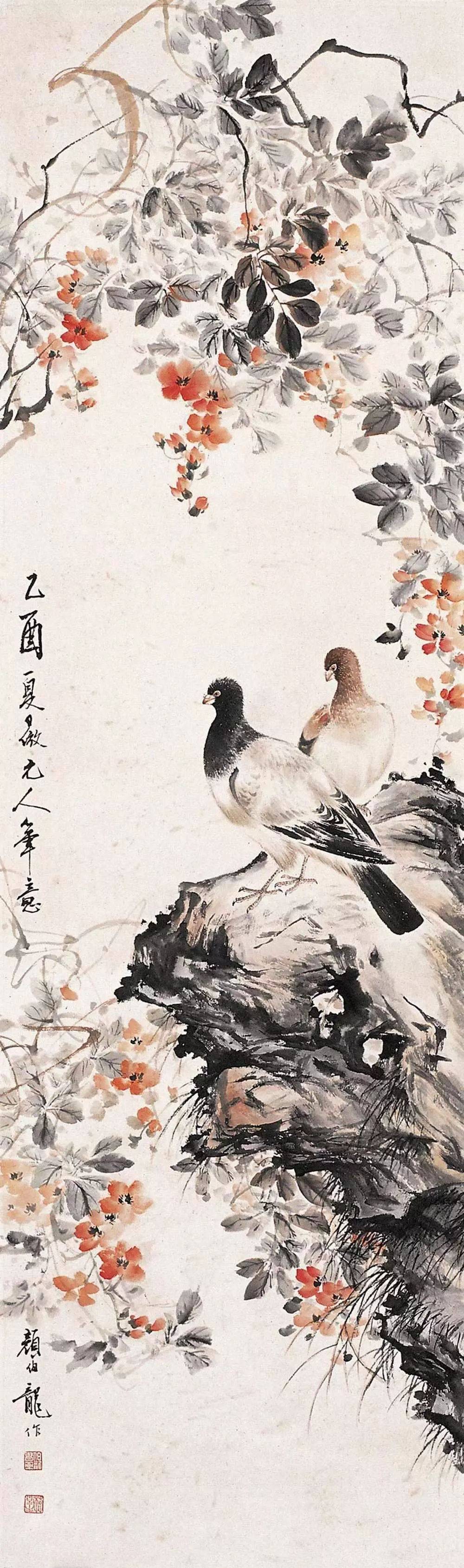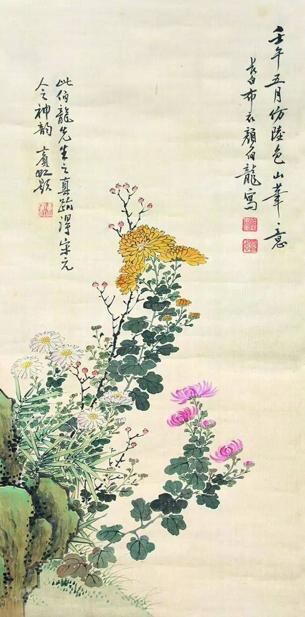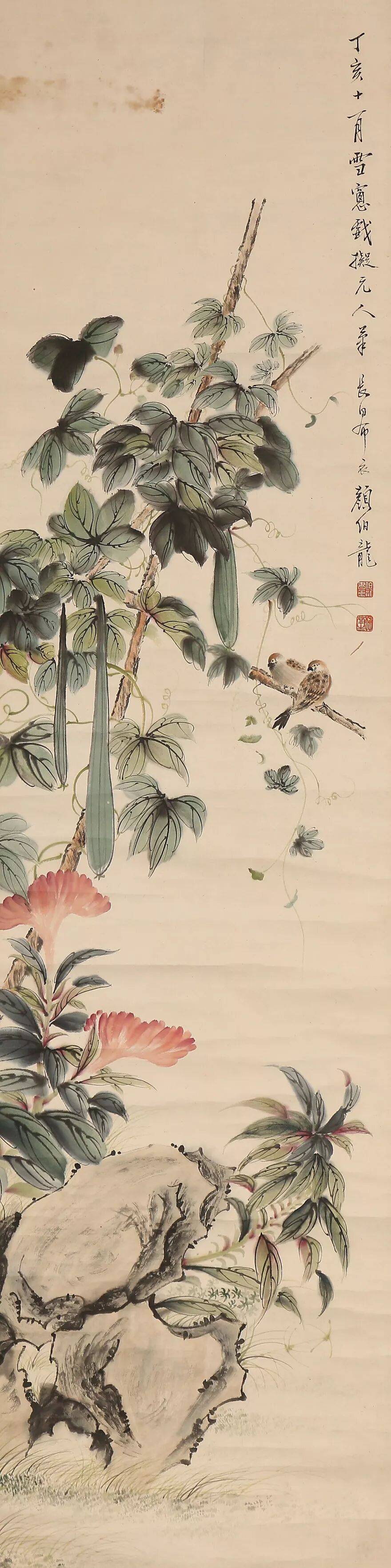 颜伯龙:(1898~1955)满族,正黄旗,北京人。名云霖,字伯龙(以字行),号长白布衣,所居椿草堂。民国时期京津画派著名的花鸟画家,工山水、人物、翎毛、走兽。因颜先生不喜仕途,只想做一介布衣,潜心作画,又因颜先生祖籍长白,故称“长白布衣”。