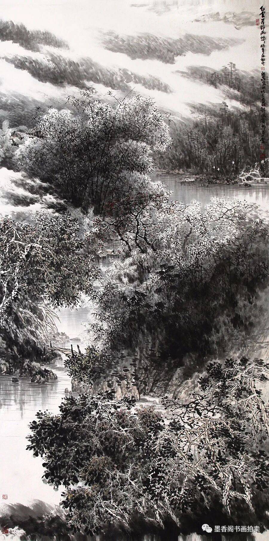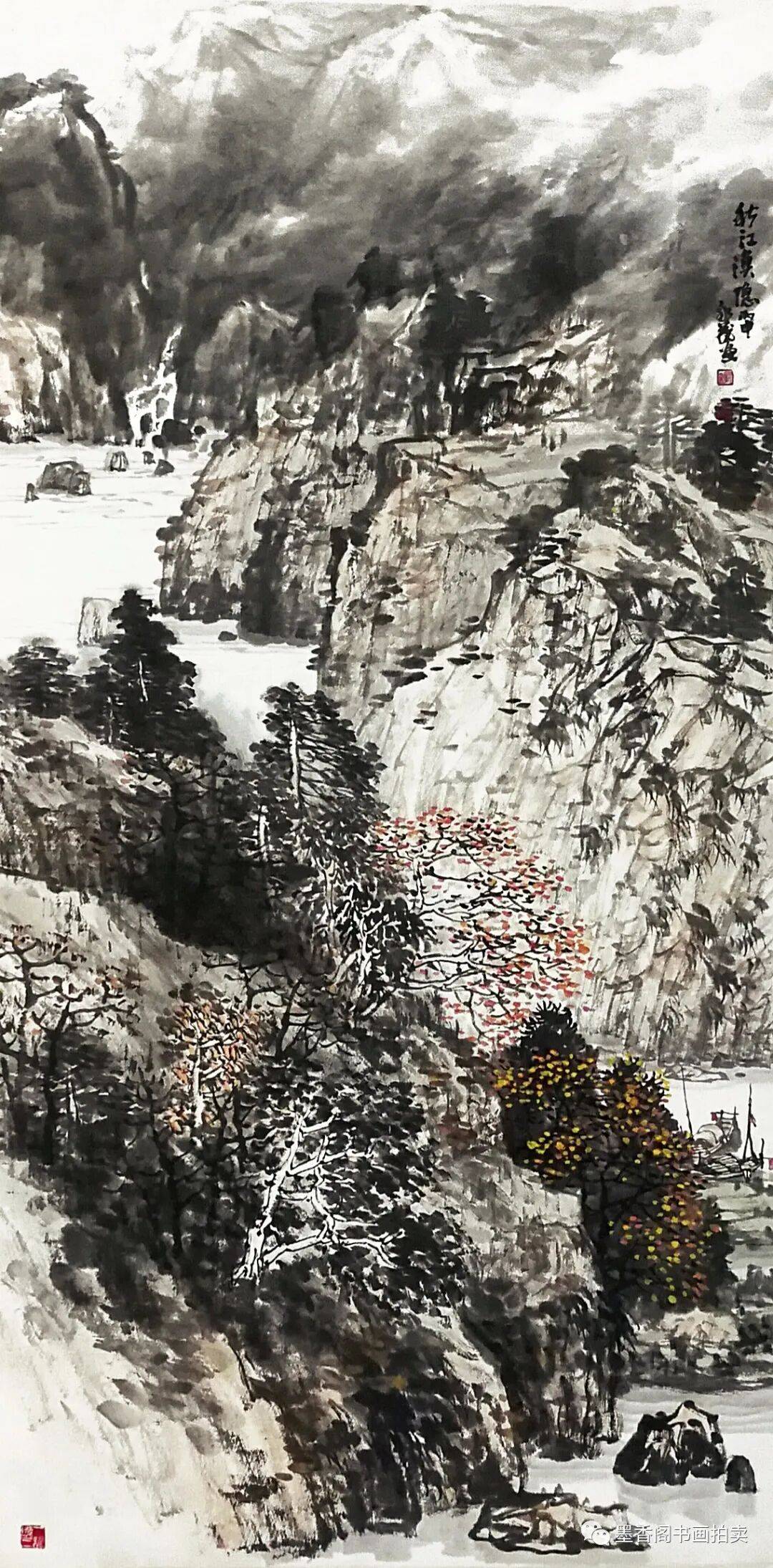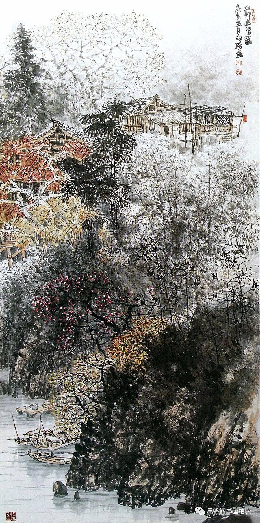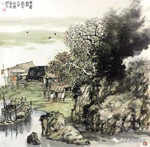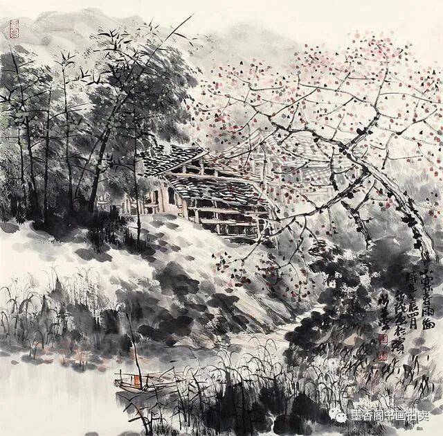 中国画的苍茫感与点有直接的联系。点的大小、点的多少,点的疏密,点的浓淡,点的轻重,点的形状,点的位置等等都直接地决定着画面苍茫感的程度。一张山水画若嫌画得太光、太平,改观的办法便是点苔,即在画面必要的地方,甚至画面的任何地方打点子,这一点很神效,原来光滑、平板的感觉渐渐消去,苍茫之感随之而来。但是,决不要以为愈点便会愈苍茫,苍茫感与打点子之间有一个适当的程度——即感觉中最佳的“苍茫度”的问题。点得不够,便达不到这个最佳的苍茫度;点得太过,例如点得太细密、太繁复亦会达不到或超过这个最佳苍茫度,可能会点着点着感觉到苍茫感有了,再点下去这种感觉中的苍茫感反而减弱了,甚至消失了,画面又回到了原先光滑平板的感觉中去了。苍茫感存在于画家和观众的感觉之中,把握好画面的苍茫度便是画家的功夫和才气的体现。