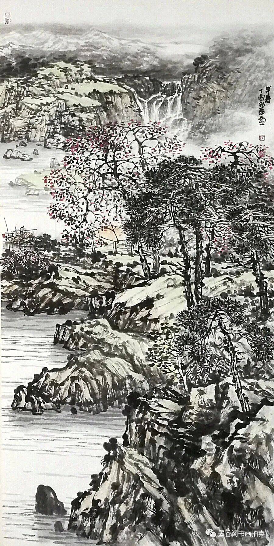 勾、皴、点、染作为中国画描写物象的主要方法,它们是互相独立的,各自有各自的具体内容和一定的过程,然而它们又是不能机械地“定格”、机械地搬用的。勾、皴、点、染之间相互联系,本无明确的界限。在描绘山石时,应该先勾后皴还是先皴后勾呢?两者都可以。点染是否一定得在勾皴之后的基础上进行呢?不一定,先点染后勾皴的情况亦是有的。“染”的手法可以重复使用,勾皴的手法能否重复使用呢?当然可以,而且可以色墨并用。所有这些,都是根据画面的需要而定的。