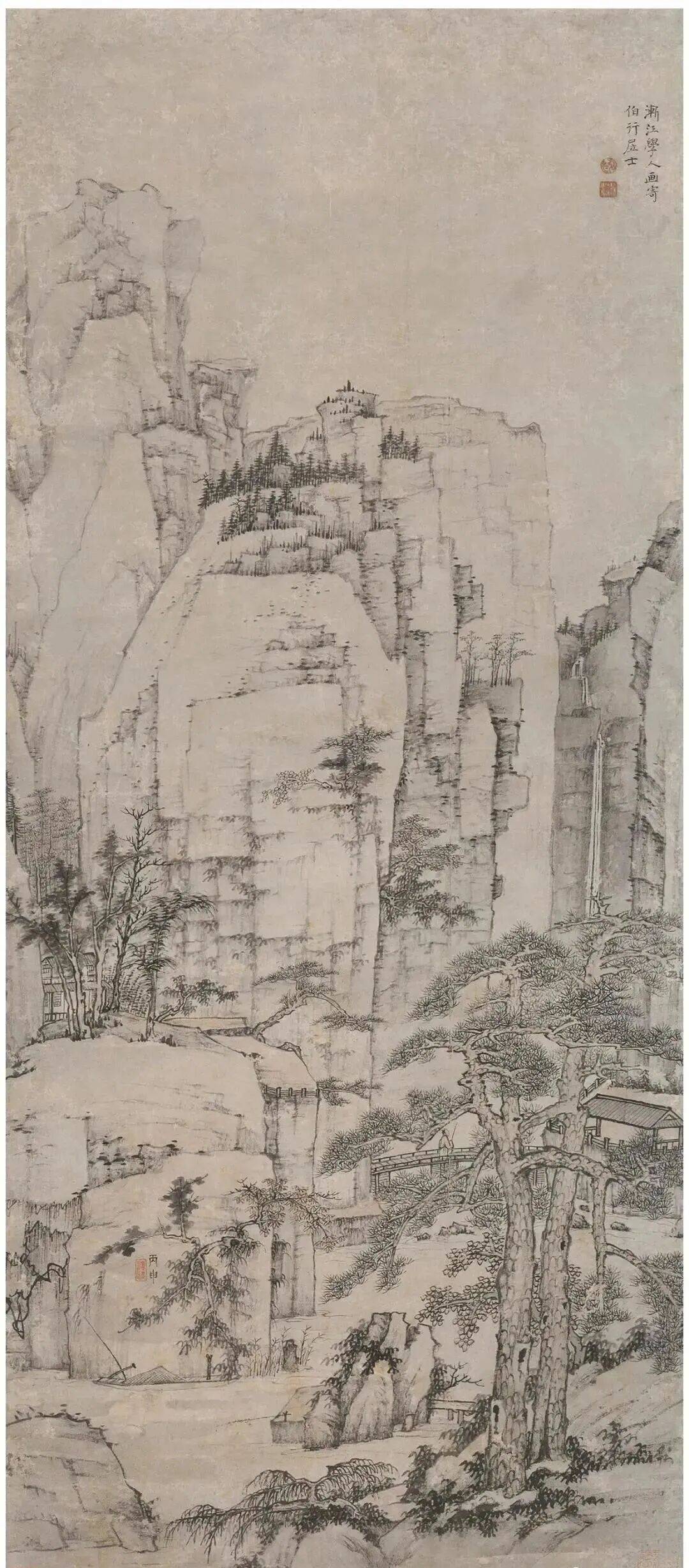 清 弘仁 松溪石壁图 纸本 118×50cm 天津博物馆藏