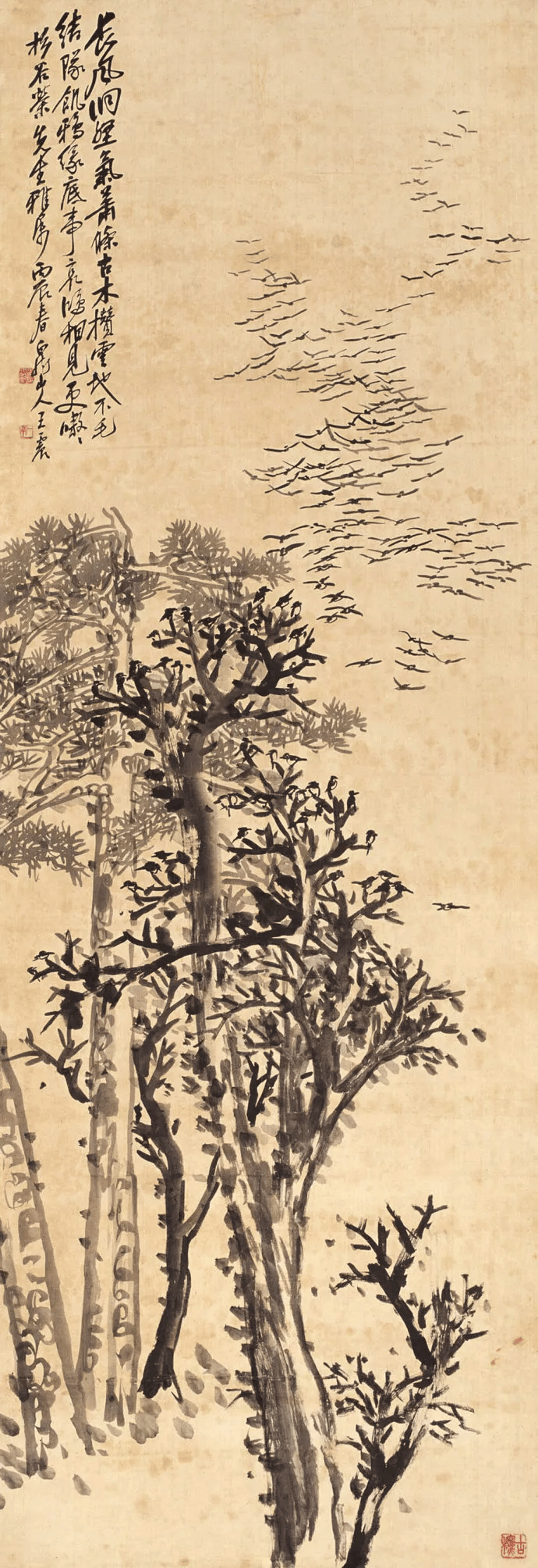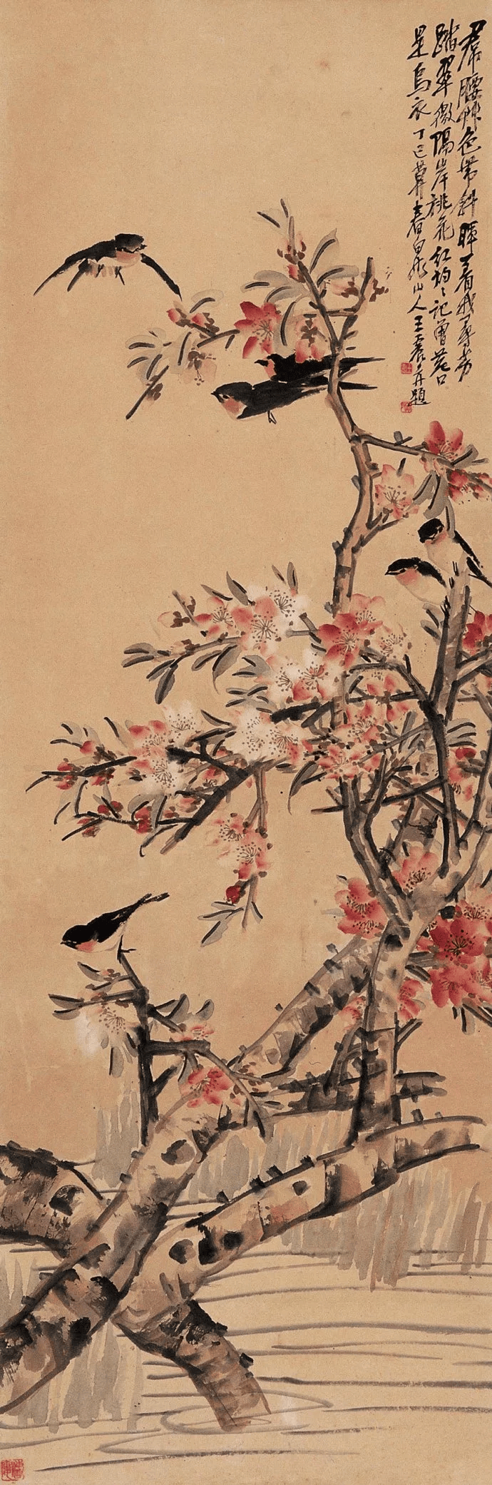 受外祖母影响, 王一亭自幼酷爱绘画,十二三岁时,画名已传遍周浦镇,被视为少年奇才。后师任伯年,任伯年的创作理念及平民化艺术形式,对王一亭的绘画影响极大。王一亭其后期书画创作深受吴昌硕金石风格影响,但仍保持其自身的写实特色。在当时海上画坛中地位仅次于吴昌硕。吴昌硕赠诗王一亭曰:“天惊地怪生一亭,笔铸生铁墨寒雨。”