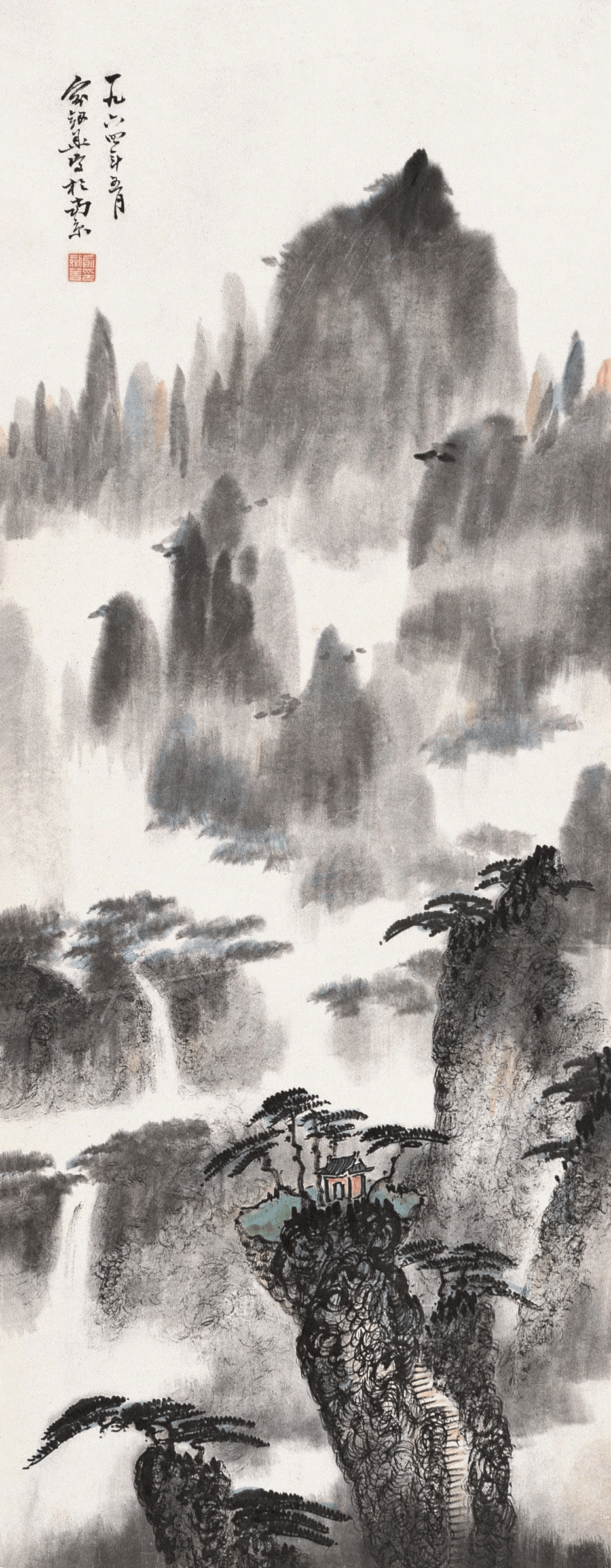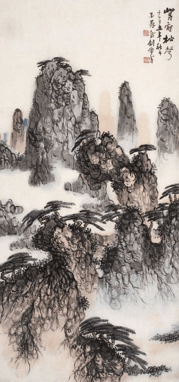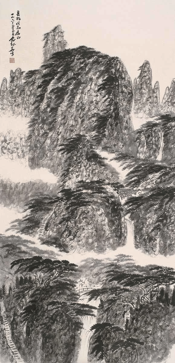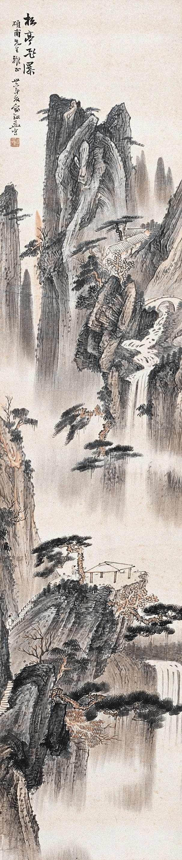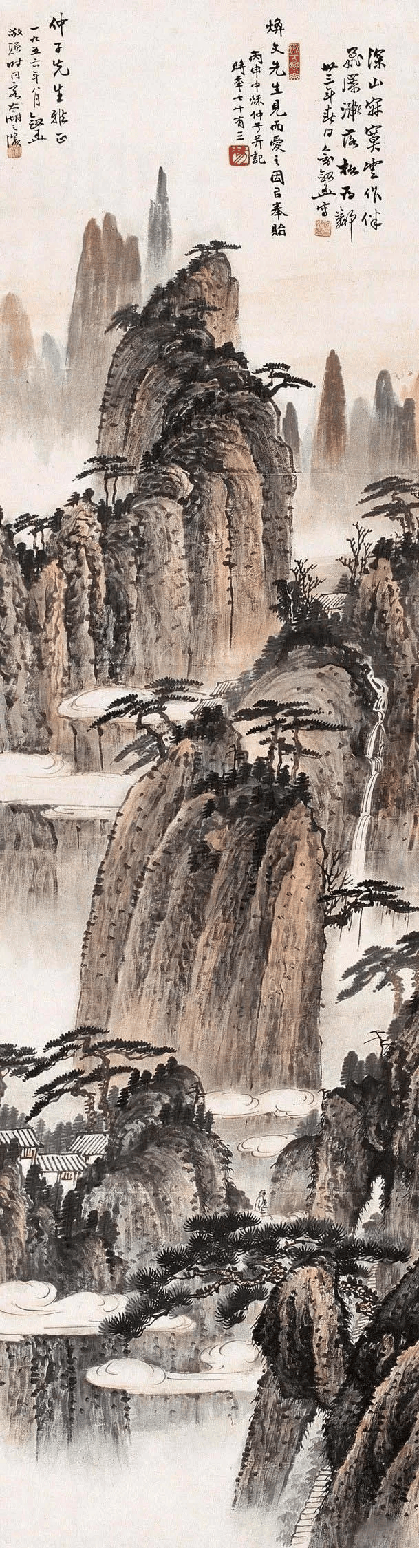 俞剑华擅山水,兼擅花卉,工书法。其作山水,多飞瀑流泉,高山雾霭,笔墨苍劲,构图丰满,含蓄有味,自成一格!