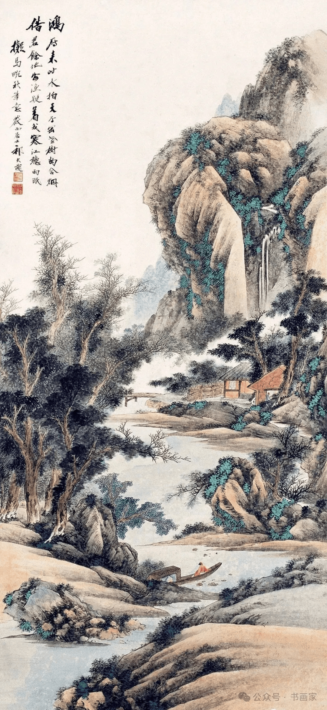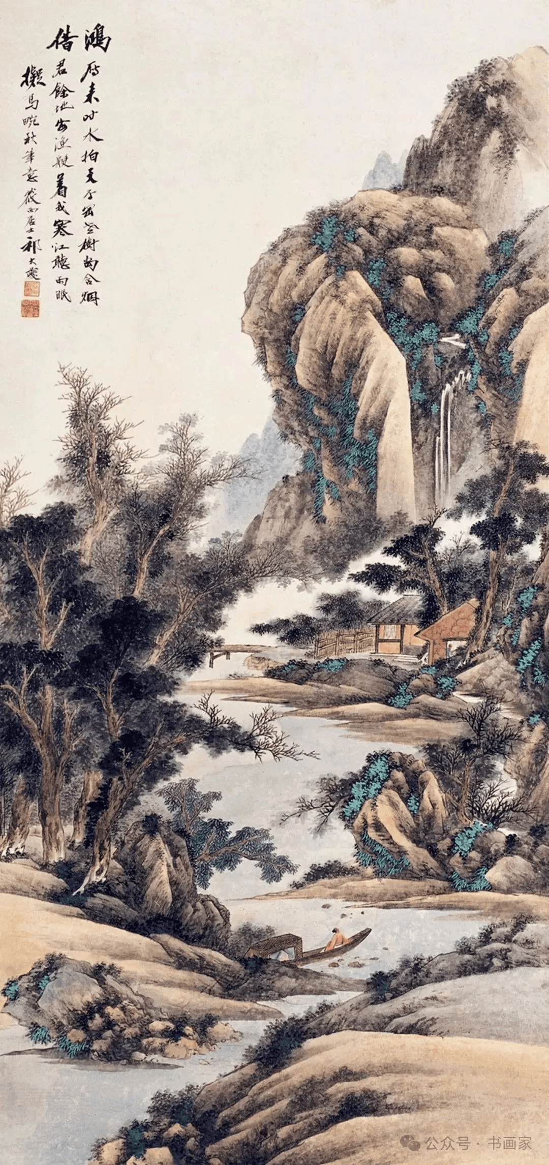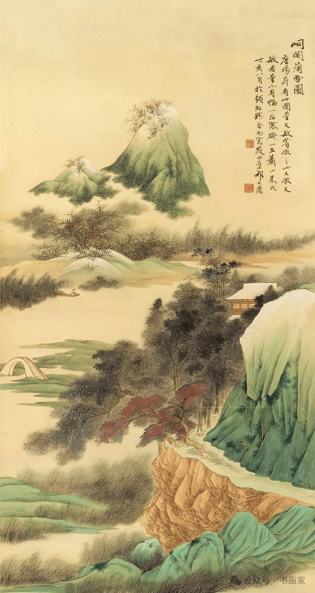 祁大夔的作品风格强调苍润清逸,他巧妙地运用小青绿色彩进行敷染,生动地再现了江南山水的万种柔情。