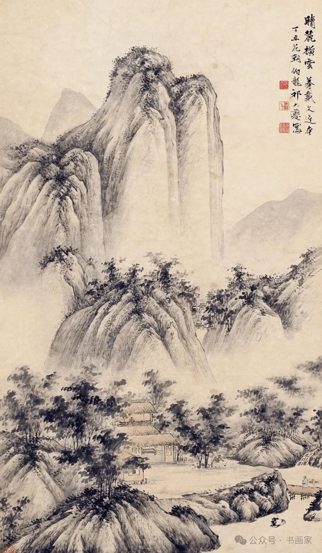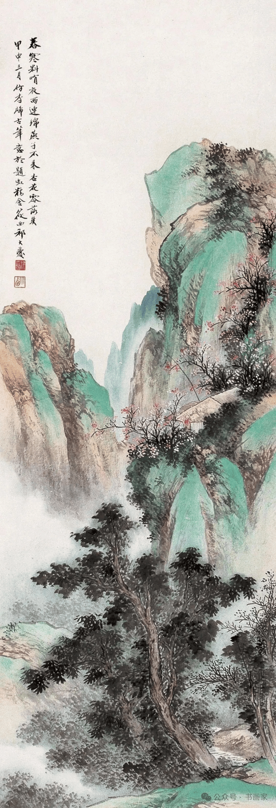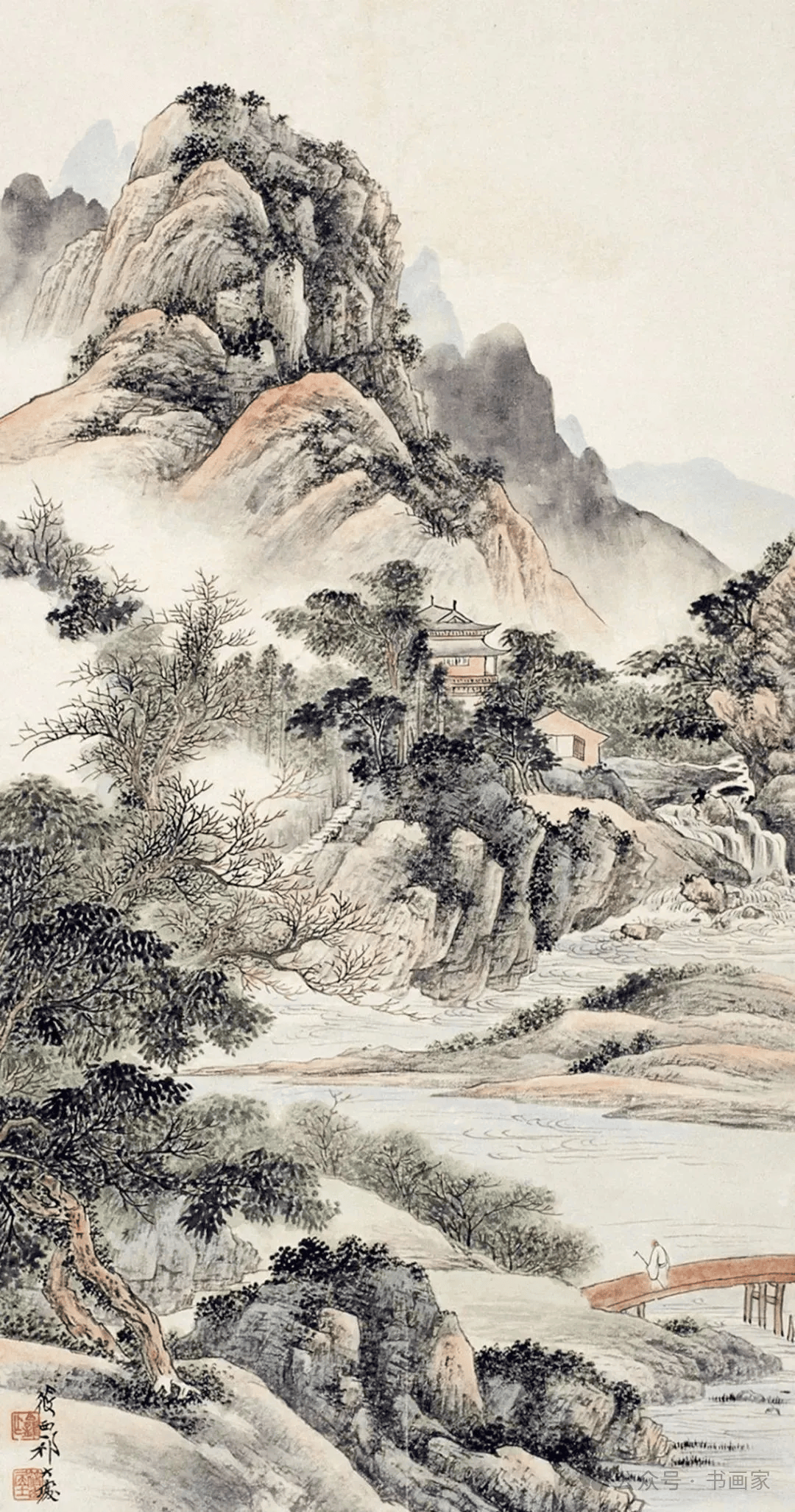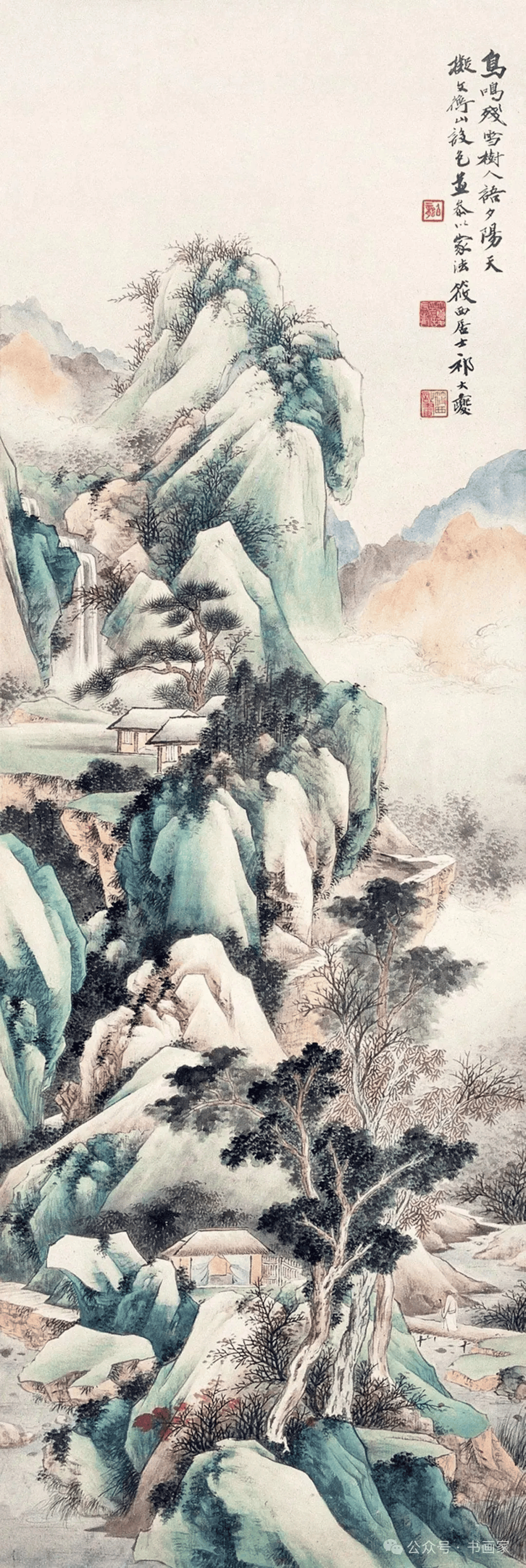 祁大夔的作品风格强调苍润清逸,他巧妙地运用小青绿色彩进行敷染,生动地再现了江南山水的万种柔情。