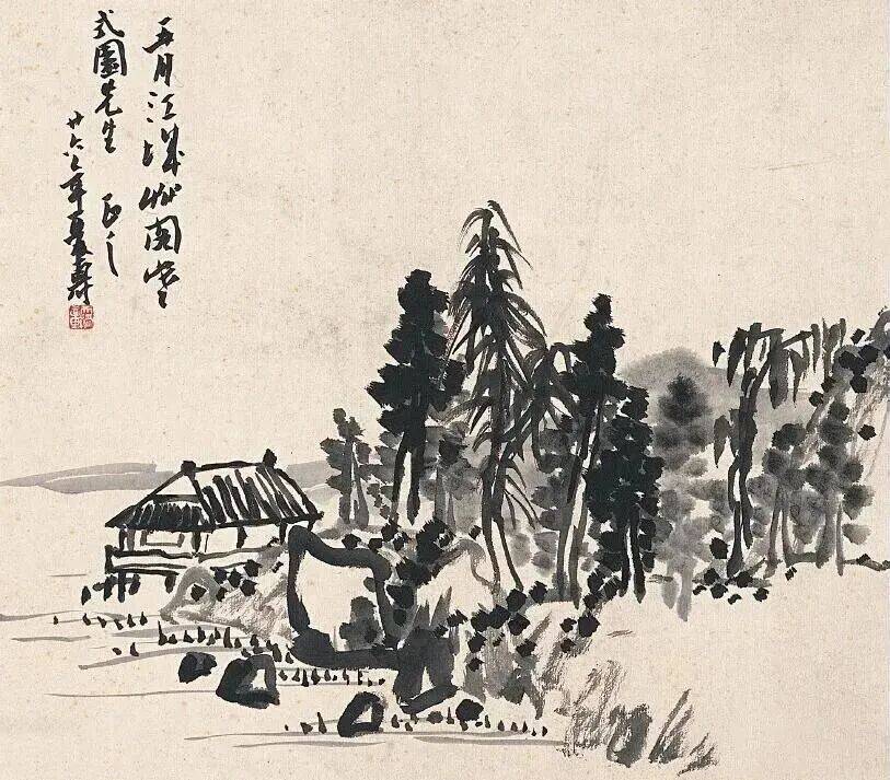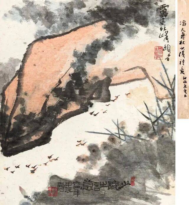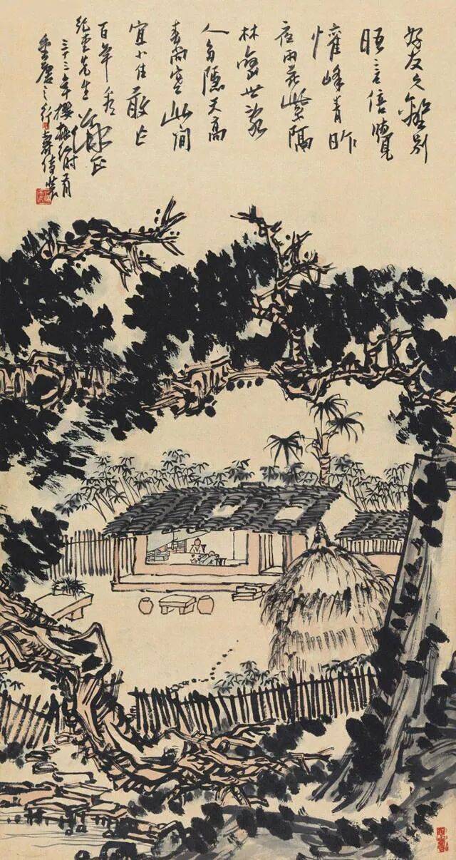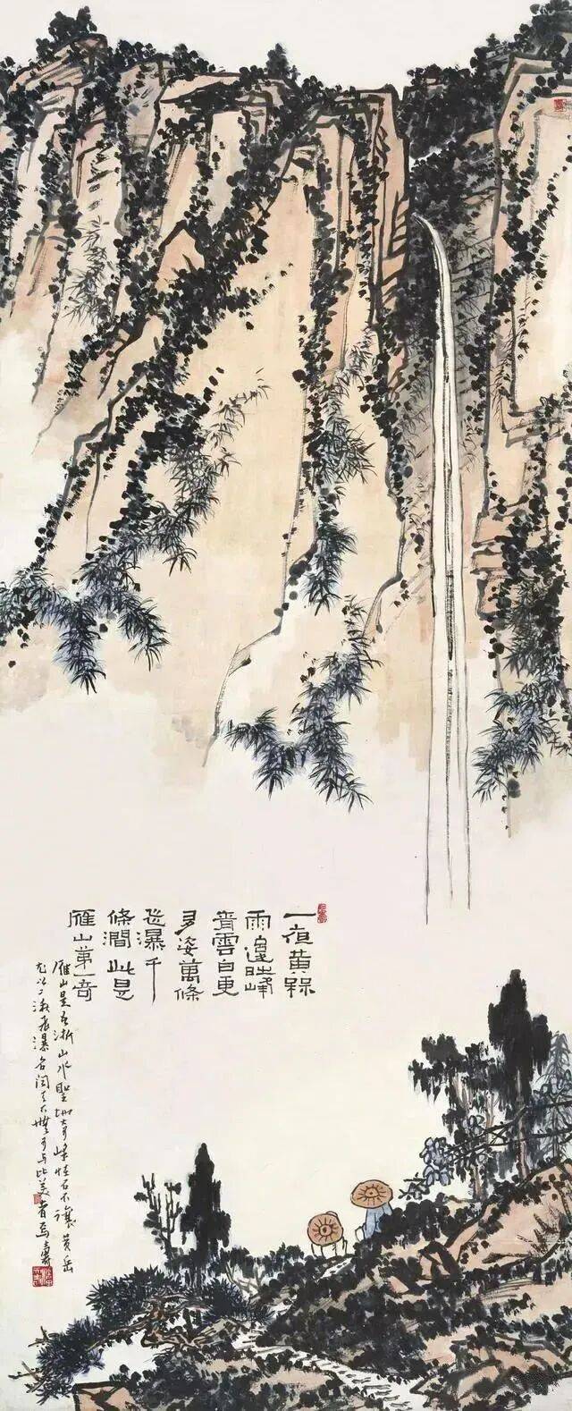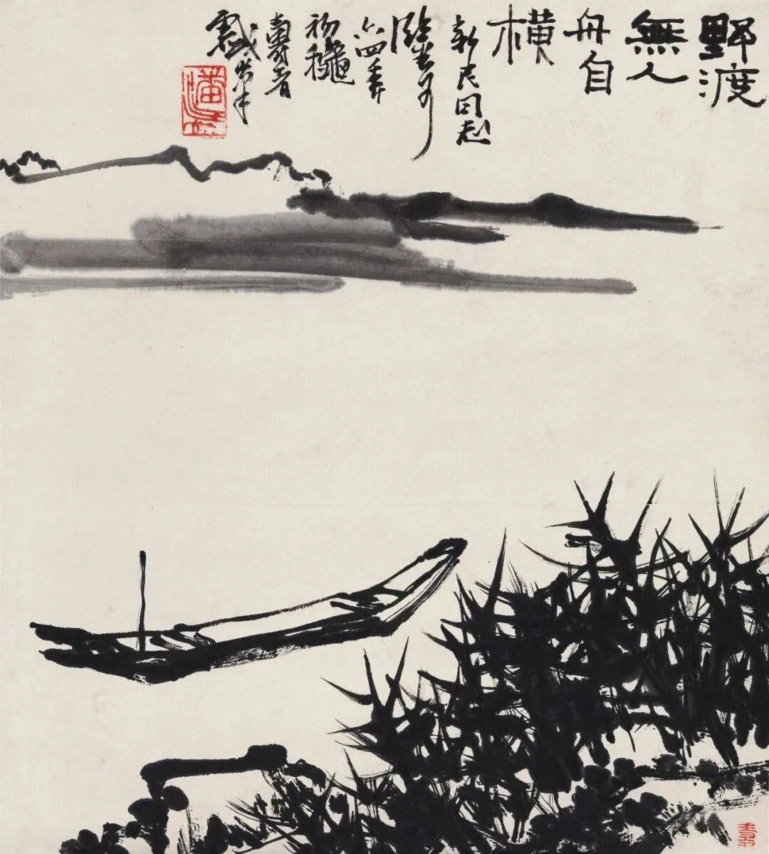 潘天寿主张“荒山乱石,幽草闲花,皆可成极品”,善于从平凡景致中提炼出幽深静穆之美,其山水画不仅注重意境营造,更强调结构的现代感与笔墨的纯粹性。