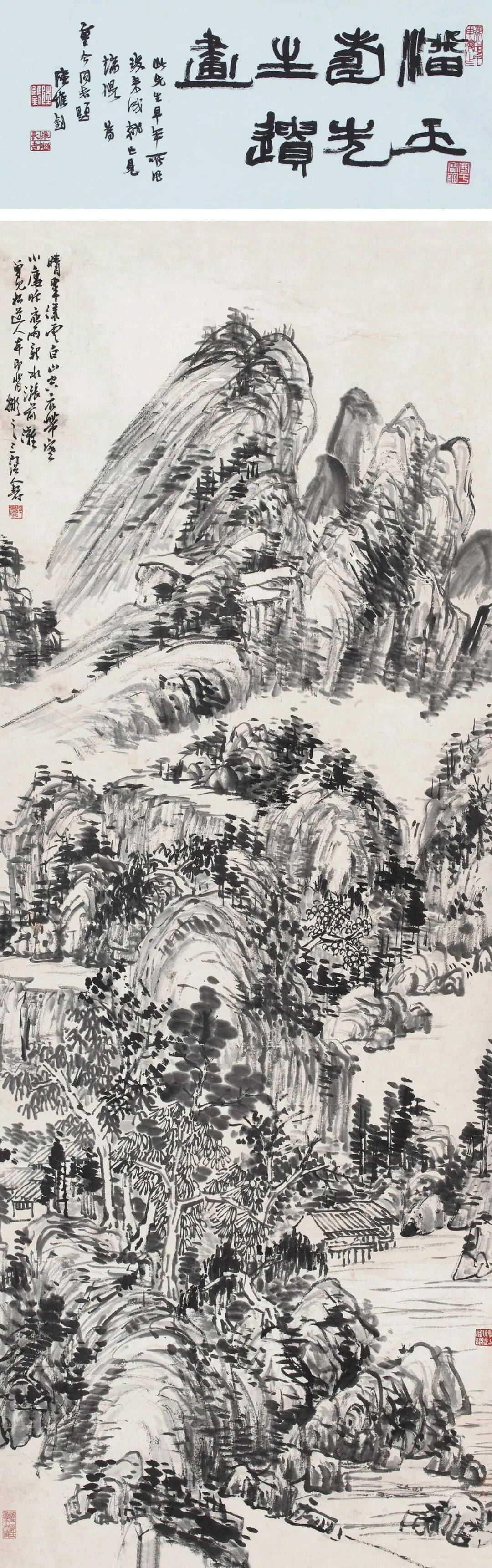这一时期潘天寿尚在求学与初执教鞭阶段,作品深受石涛、八大山人及吴昌硕影响,注重传统笔墨的研习与转化。他以临摹《芥子园画谱》入门,后通过“仿八大山水”“拟石涛笔意”等实践,逐步形成劲健明豁的用笔风格。代表作如《溪山烟雨》(1920年)、《长风白水图》(1922年)和《云谷菱歌图》(1925年),已显露出对构图气势与自然生机的敏锐把握,画面中诗书画印初现融合之势。