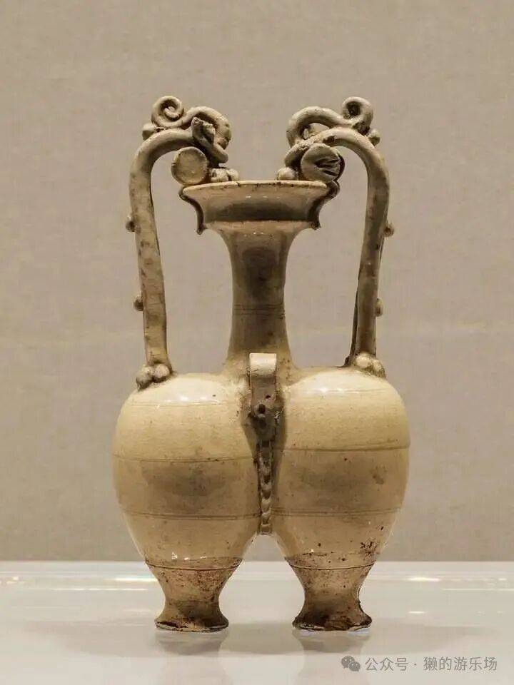 禁止出国文物:隋代白釉双龙柄联腹传瓶