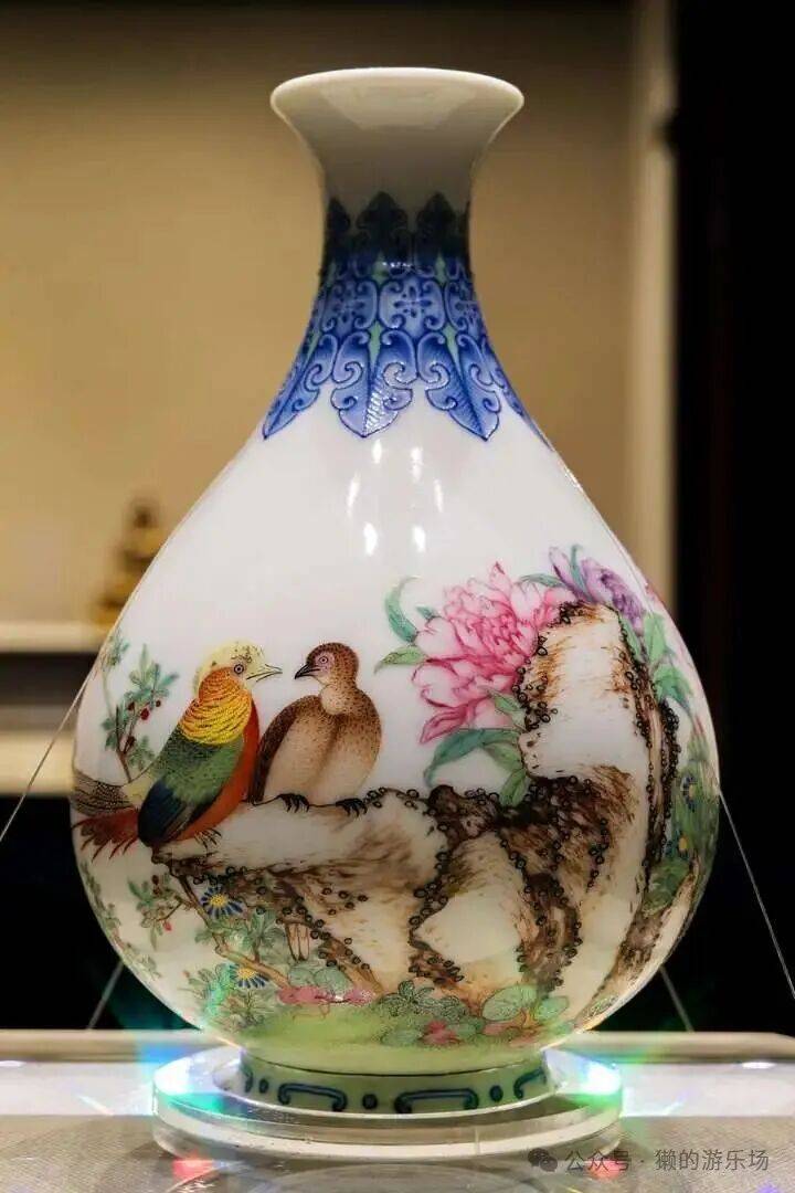 天博三大镇馆之宝之一:清乾隆款珐琅彩芍药雉鸡图玉壶春瓶
