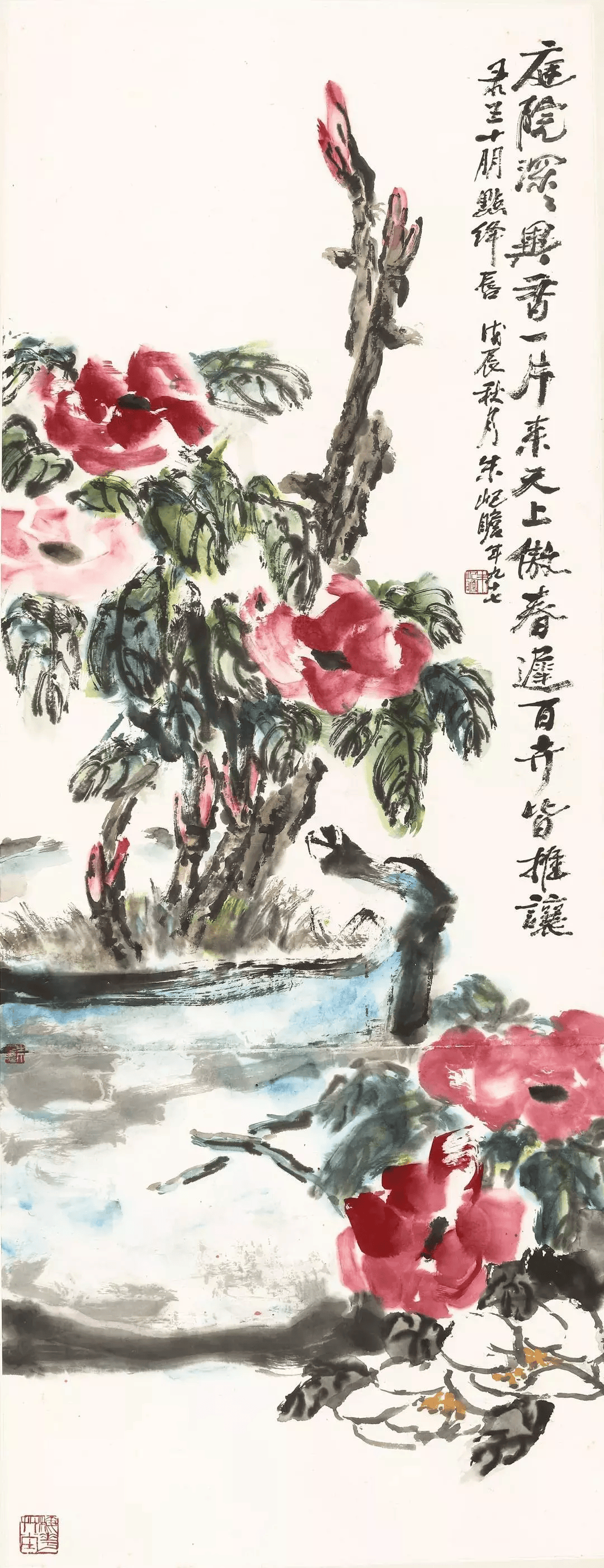 朱屺瞻 庭院深深 戊辰(1988年)作 126×47.5cm