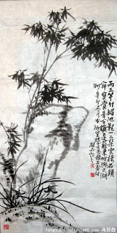 ] 冯羽白 写意 两三竿竹媚池影