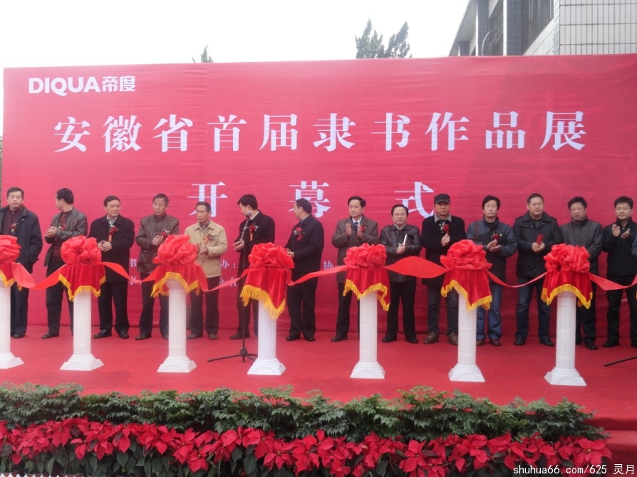 中国神州书画院2012年12月3日讯:今天上午,由安徽省书法家协会主办、安徽省书法家协会隶书专业委员会承办、合肥荣事达三洋电器股份有限公司协办的“帝度”杯安徽省首届隶书作品展开幕式在合肥久留米美术馆举行。安徽省书法家协会主席张学群,安徽省书法家协会驻会副主席兼秘书长王亚洲,著名书画家王家琰,安徽省演艺集团总经理陈建国,省书协副主席隶书专业委员会主任余国松,省书协副主席桂雍,滁州市书协副主席中国神州书画院副主席方洪,安徽省妇女书法家协会主席陈萍,合肥荣事达三洋电器股份有限公司总经理金友华,安徽省书协隶书专业委员会凌斌以及首届隶书展评委、入展获奖作者、媒体、书法爱好者约300人参加了开幕式。